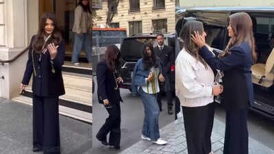 The queen is back as fans would say it. Aishwarya Rai Bachchan is usually away from the limelight and is not often spotted by fans. But the actress has now arrived in Paris, ahead of the Paris Fashion Week. The daughter Aaradhya was seen with her as well. The mother-daughter duo looked stunning and the internet cannot stop gushing over Aishwarya‘s boss lady look. Some latest videos of Aishwarya and Aaradhya were shared by a fan club.In one of the videos, Aishwarya can be seen getting off the car with Aaradhya and walking on the street’. She can be seen in a navy blue pair of trousers and blazer along with a white shirt. Her hair left open and this look just left the internet stunned. ‘Her hair is hairing,’ said a user. Meanwhile, Aaradhya was spotted in baggy denims with a denim jacket look. Both of them looked gorgeous and Aishwarya could also be seen posing with a fan.