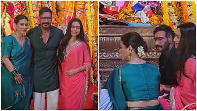 Like every year, Kajol turned heads at North Mumbai’s iconic Durga Puja pandal, where the Mukerji family hosts one of the grandest Navratri celebrations. On Maha Navami (October 1), she was joined by husband Ajay Devgn and daughter Nysa Devgan as the family offered prayers at the pandal.Kajol, radiant in a green saree with silver embellishments, paired with a gajra and minimal jewellery, was seen twinning with Ajay, who looked dapper in a green kurta and white pyjama. Their daughter Nysa accompanied them, making it a complete family outing.