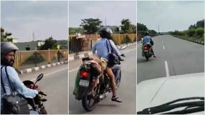 NAGPUR: A motorcycle rider with a woman’s body strapped to the seat with a dupatta and racing down Nagpur-Jabalpur highway for 80km with police on his heels has become the unlikely face of a tragedy that might have been initially mistaken for a crime, reports Soumitra Bose. Amit Yadav, 36, purportedly saw his wife Gyarshi bleed to death on a desolate stretch of the highway near Deolapar Sunday after she was thrown off his bike and run over by a truck. Amit was spotted by police speeding down the highway in blinding rain and taking detours through dirt roads to reach his home near Nagpur.“There was no mobile network and nobody to help. I picked up Gyarshi, strapped her to my bike and rode back,” police quoted Amit as saying. “When I saw cops chasing me, I panicked more and I kept going.”