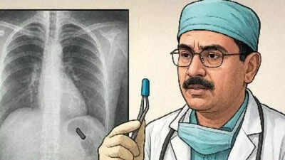 NEW DELHI: A Delhi man accidentally swallowed the pen cap at the age of 7, and it was stuck with him for 26 years. Doctors were stunned to discover a plastic pen cap lodged deep in his lung, finally pulling it out in a rare medical feat.“The 33-year-old male patient had accidentally swallowed the pen cap at the age of 7 while playing. Since then, he experienced no major health complications until recently, when he reported to the hospital with persistent coughing and traces of blood in his sputum,” the hospital said. A series of investigations, including an X-ray, revealed the presence of a foreign body in his lung. Considering the risks, the thoracic surgery team led by Dr Sabyasachi Bal, Chairperson at Sir Ganga Ram Hospital, decided to perform the surgery. During the operation, doctors were astonished to discover and successfully extract a 26-year-old plastic pen cap. “This is a highly unusual and rare case in India. A foreign object lodged in the lung for such a long duration without causing life-threatening complications is extremely uncommon. However, it also highlights how dangerous such situations can become over time, as they may lead to infections, bleeding, or other serious health risks,” Dr Roman Dutta, Consultant, Department of Thoracic Surgery at Sir Ganga Ram Hospital said. The patient is now stable and recovering well. Doctors emphasise that any suspected ingestion of foreign objects, especially among children, must be evaluated immediately to prevent long-term health risks.