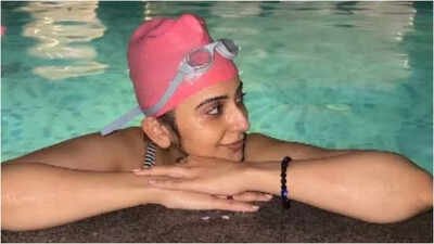 Rakul Preet Singh is keeping herself busy with a variety of promising projects lined up. Renowned for her acting skills, the actress has now embarked on a new film, and she recently shared a sneak peek with her fans of how she ended her first day of shooting. Posting on social media, she revealed her ideal way to relax after a long and tiring day on set.Unwinding post-shoot: A candid swimming momentIn a candid moment shared on her Instagram Stories, Rakul showed herself unwinding with a swim right after finishing her shoot. Sporting a pink swimming cap and goggles, she looked glowing and refreshed. Alongside the image, Rakul wrote, “Day 1 of shoot…Managed a swim post pack-up,” followed by a red heart emoji.