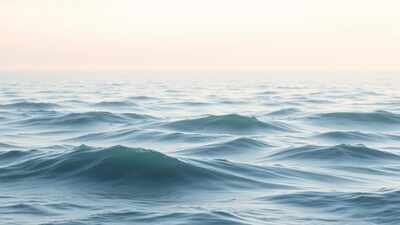 Soft pastel hues blend seamlessly as gentle waves flow towards a hazy horizon, symbolizing the continuous journey of emotional growth.