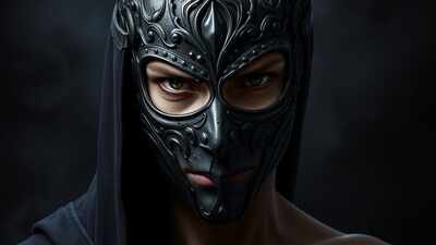 I portray the enigmatic nature of Scorpio, my masked face revealing a glimpse of vulnerability and passion within the shadows.