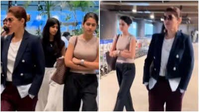 On the other hand, Nitara appeared reserved as she accompanied her mother, Twinkle, at the airport. She kept it simple in a black top, white sweatpants and a basic backpack for a fuss-free vibe. Joining them, Naomika Saran opted for a beige top with loose black pants, her hair in a neat bun, and carried a chic designer shoulder bag, effortlessly balancing comfort and style. All three were seen making their way to the airport departure before leaving in their car.