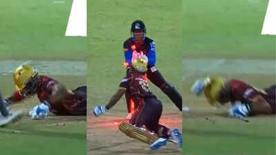 Trinbago Knight Riders captain Nicholas Pooran let his emotions spill out during a tense Caribbean Premier League (CPL) 2025 clash against Antigua and Barbuda Falcons on August 20. Chasing a target of 168, Pooran struggled to find momentum and was under pressure after scoring just 10 runs off 13 deliveries. In the 10th over, he attempted to take on off-spinner Rahkeem Cornwall by charging down the track. However, he missed the delivery that spun away, leaving him stranded as wicketkeeper Caleb Jewell swiftly completed the stumping. Pooran made a desperate turn to return to the crease but lost his balance, and up falling forwards. Visibly frustrated with the dismissal, he thumped the pitch repeatedly with both hands before walking back to the dugout. The rare outburst highlighted the pressure the Knight Riders faced in their pursuit and the weight of disappointment from Pooran for not putting up substantial runs on the board. Cornwall, meanwhile, celebrated the crucial breakthrough. The Falcons bowler returned impressive figures, conceding only 14 runs in his three overs while picking up the prized wicket of the Trinbago skipper. Pooran’s dismissal proved costly for his side. Despite a late fight, the Knight Riders fell short by 8 runs, finishing second best in the closely fought contest.